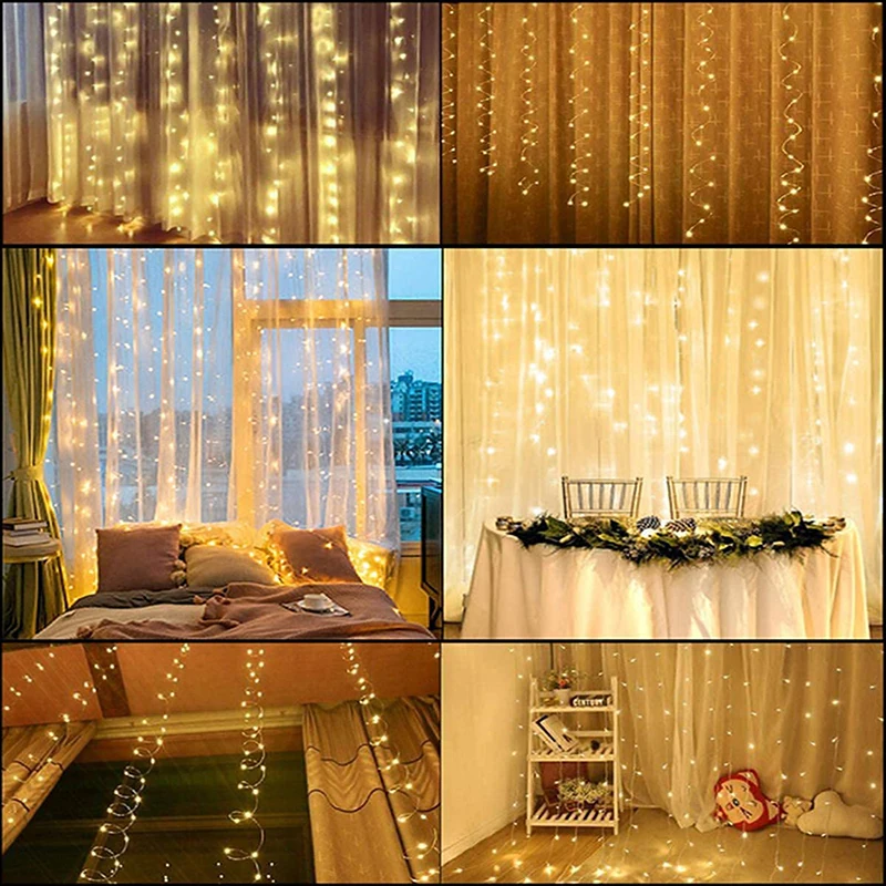 СВЕТОДИОДНАЯ Гирлянда для занавесок, праздничный шнурок с дистанционным управлением для внутреннего дворика, свадьбы, декора окон, домашний декор, 3 м