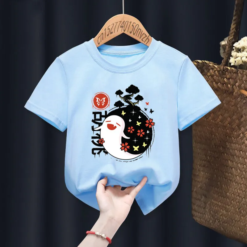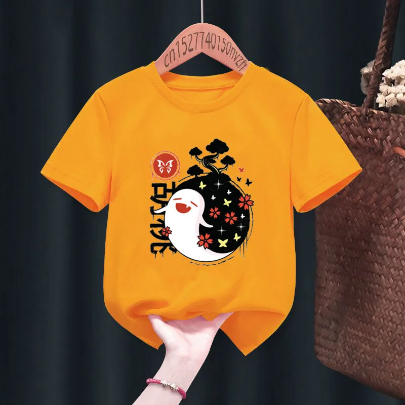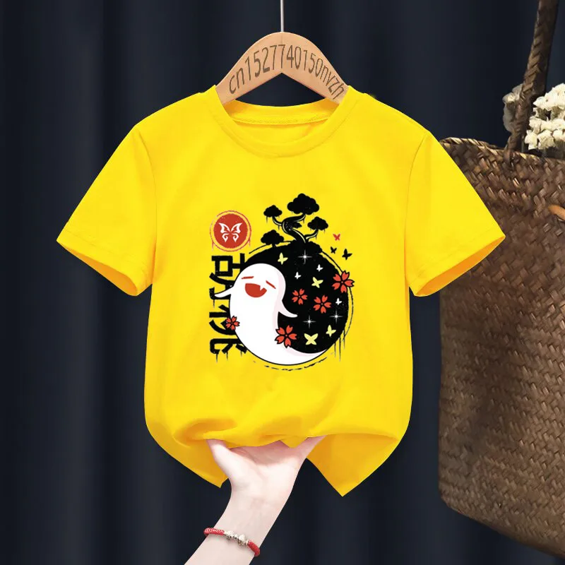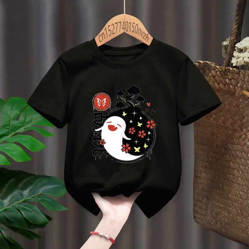 Hu Tao Genshin ударный принт красная фотография детский черный Харадзюку кавайная одежда топы для мальчиков и девочек подарок, Прямая поставка