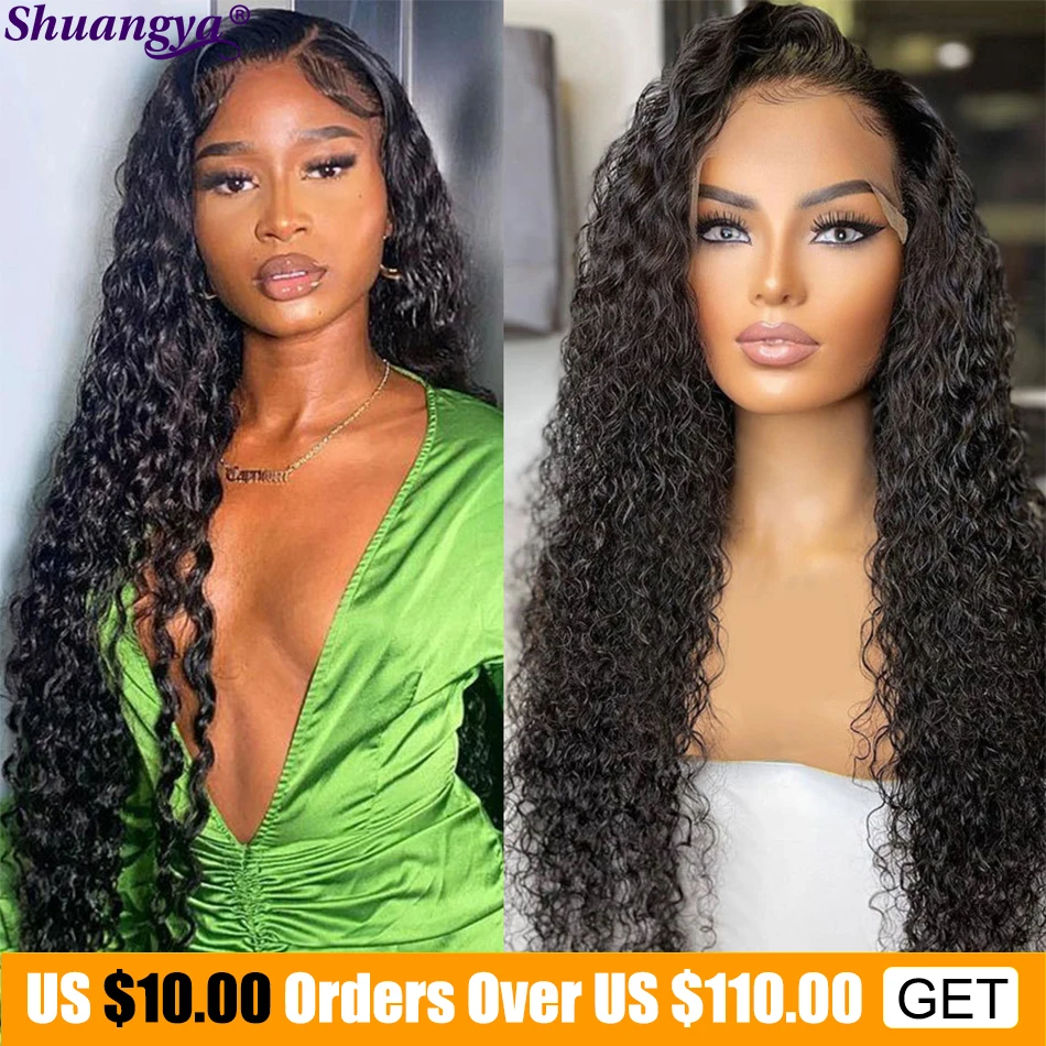 Парик из кудрявых человеческих волос, парик с кудрявыми кружевами спереди 4x4, парики на сетке, предварительно выщипанные натуральные волосы, 13x4, парики с глубокими кудрями спереди