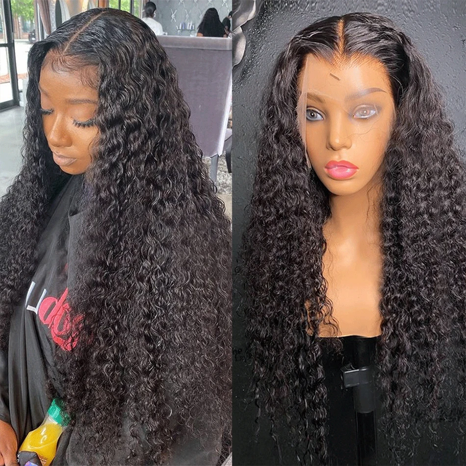 Вьющиеся парик человеческих волос кудрявый Вьющиеся Синтетические волосы на кружеве парик 4x4 кружева Закрытие парики предварительно вырезанные натуральных волос 13x4 глубоко вьющиеся синтетические волосы передние парики