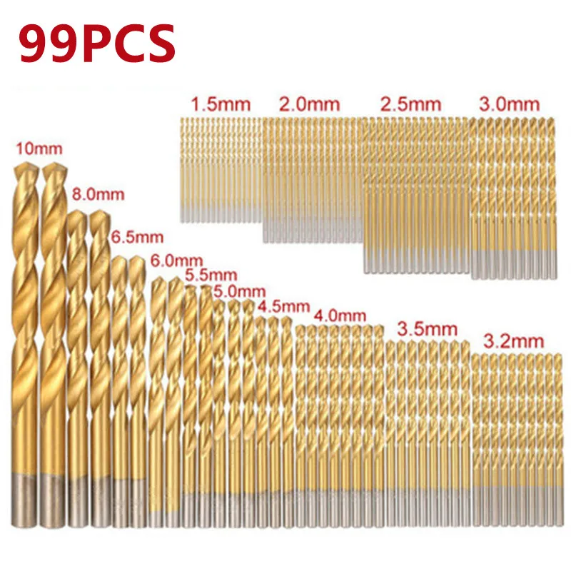 Набор сверл с титановым покрытием, 1,0-3,5 мм, 1,5-10 мм, 506099 шт.