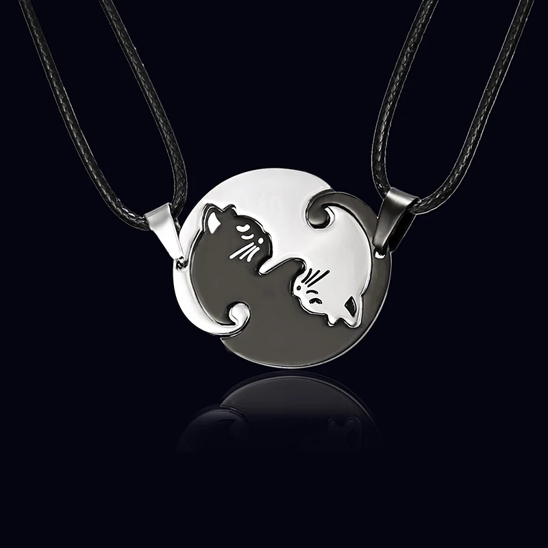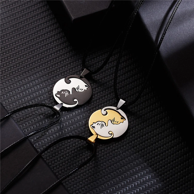 Парные подвески, ожерелье для пары кошек, черное, белое, круглое ож...