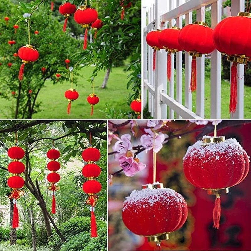 Флокированные красные фонари, подарок сделай сам, милая китайская И...