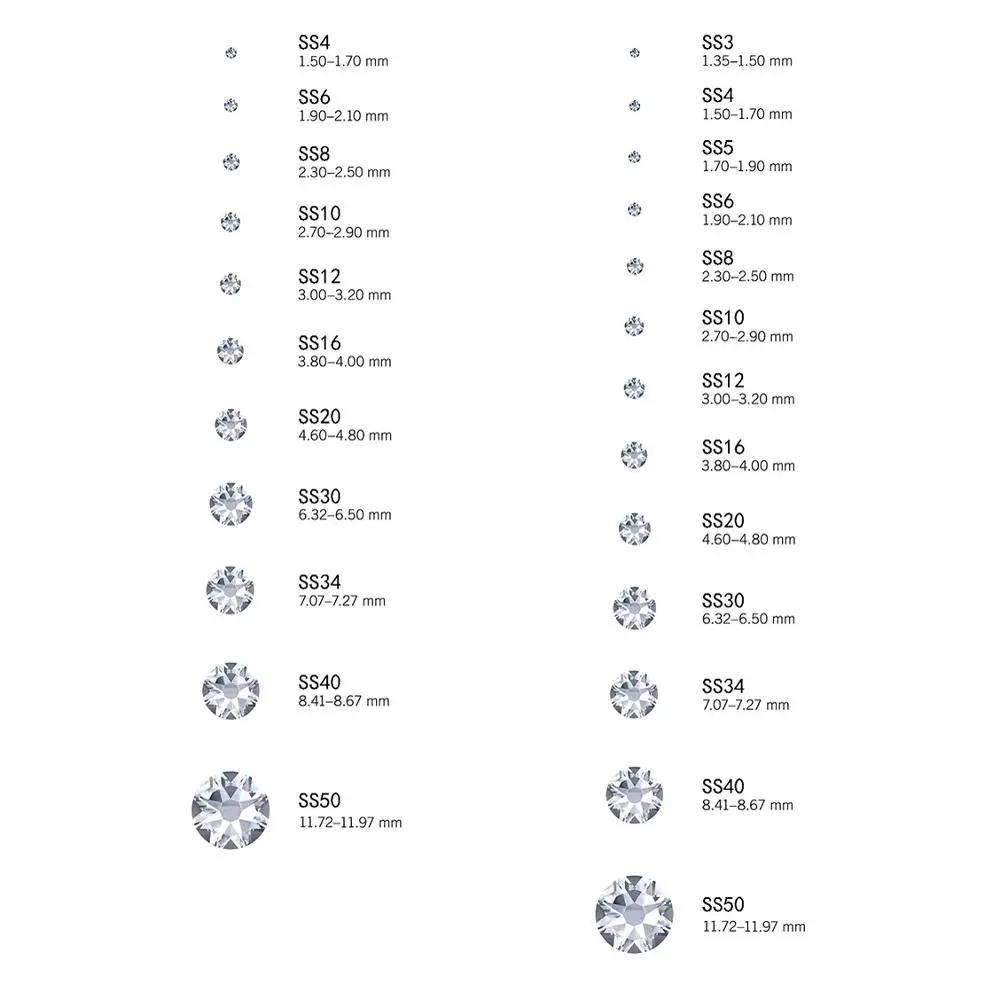 Strass Hotfix Small PackingSS3-SS20 1440pcs SS30 SS34 288pcs SS40 SS50 144pcs