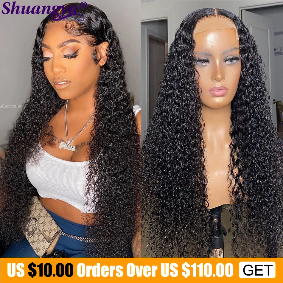 Малазийские бразильские кудрявые парики шнурка Remy человеческие волосы парики шнурка глубокая волна 4x4 закрытие шнурка парик волна воды вьющиеся человеческие волосы парик