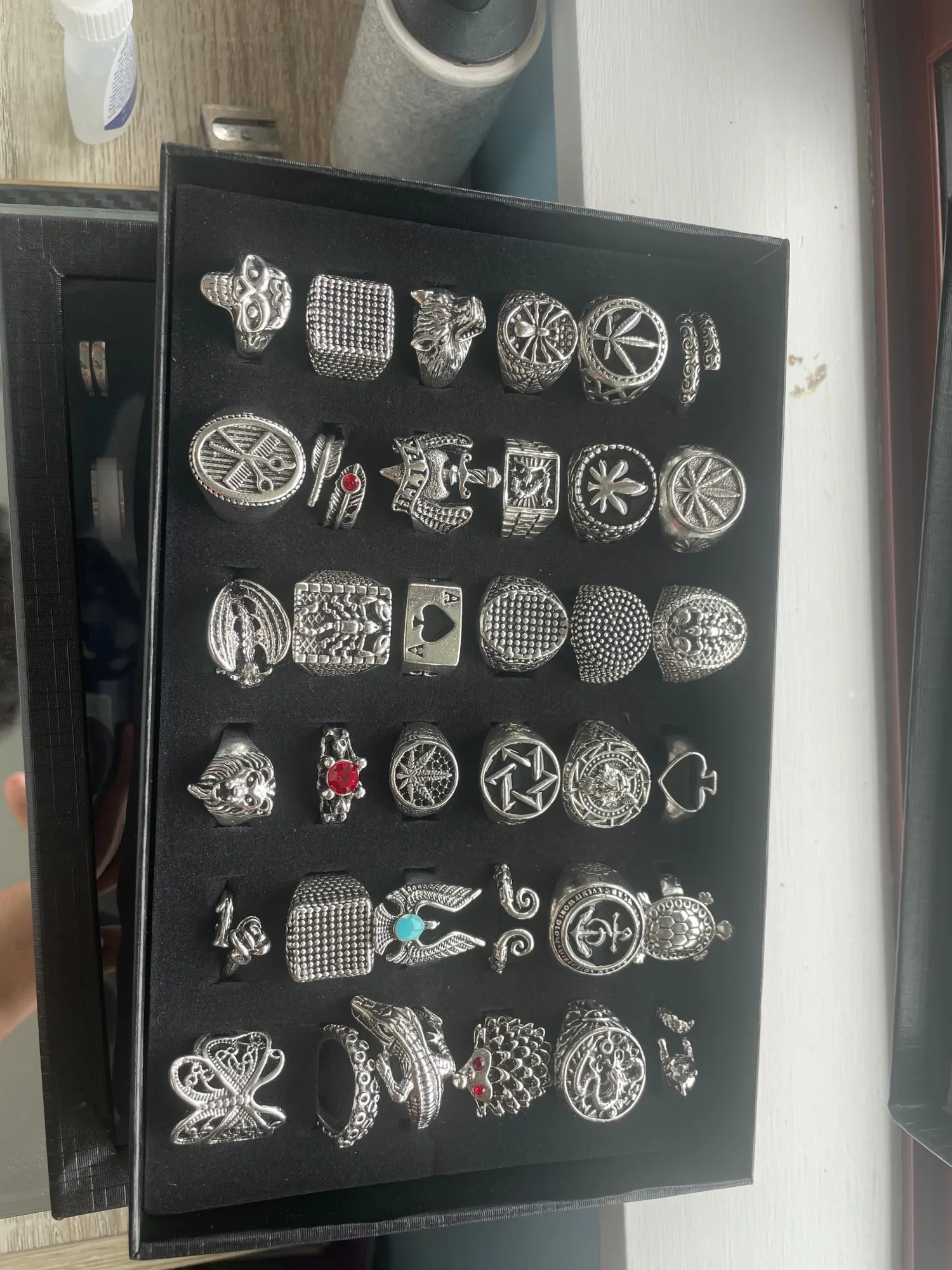 50 шт./лот кольца в стиле панкМатериал: сплав + посеребренныйРазмер: 17 мм до 21 мм Размер США 7 до 11Это кольцо частично открытое и частично закрытое.Форма: змея, Сова, Череп, скорпионы, ящерицы, ЧерепашкиКоличество: 50 шт./лотСтиль: смешанный стиль, Случайная ДоставкаУпаковка: Opp мешок, коробка не включает