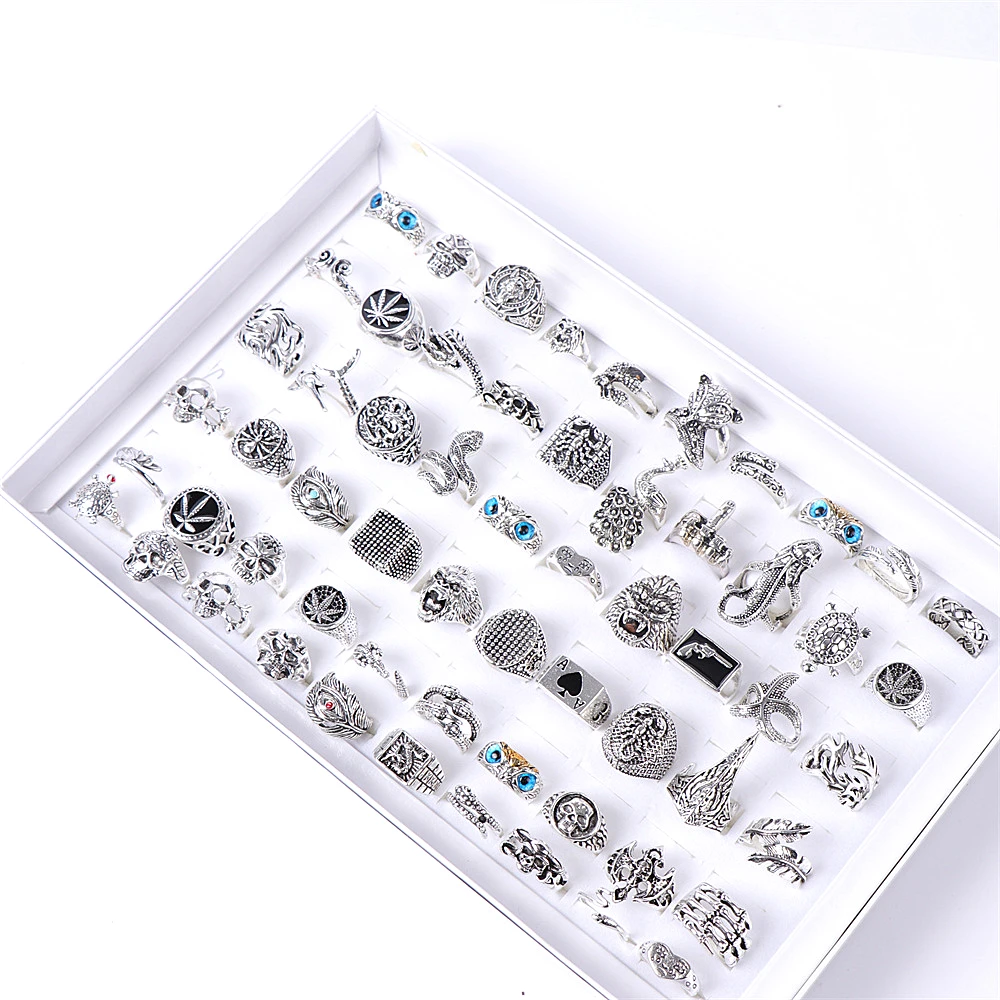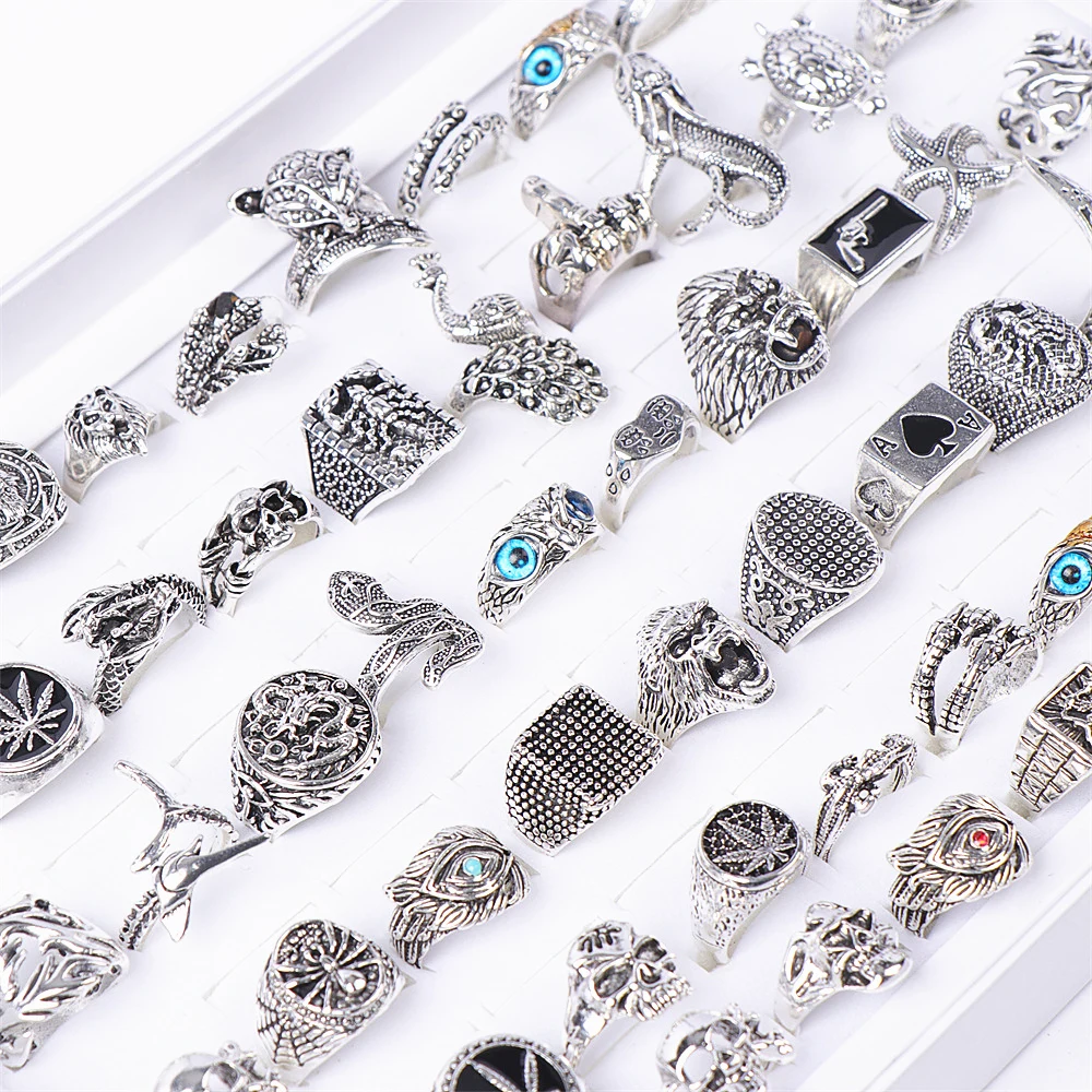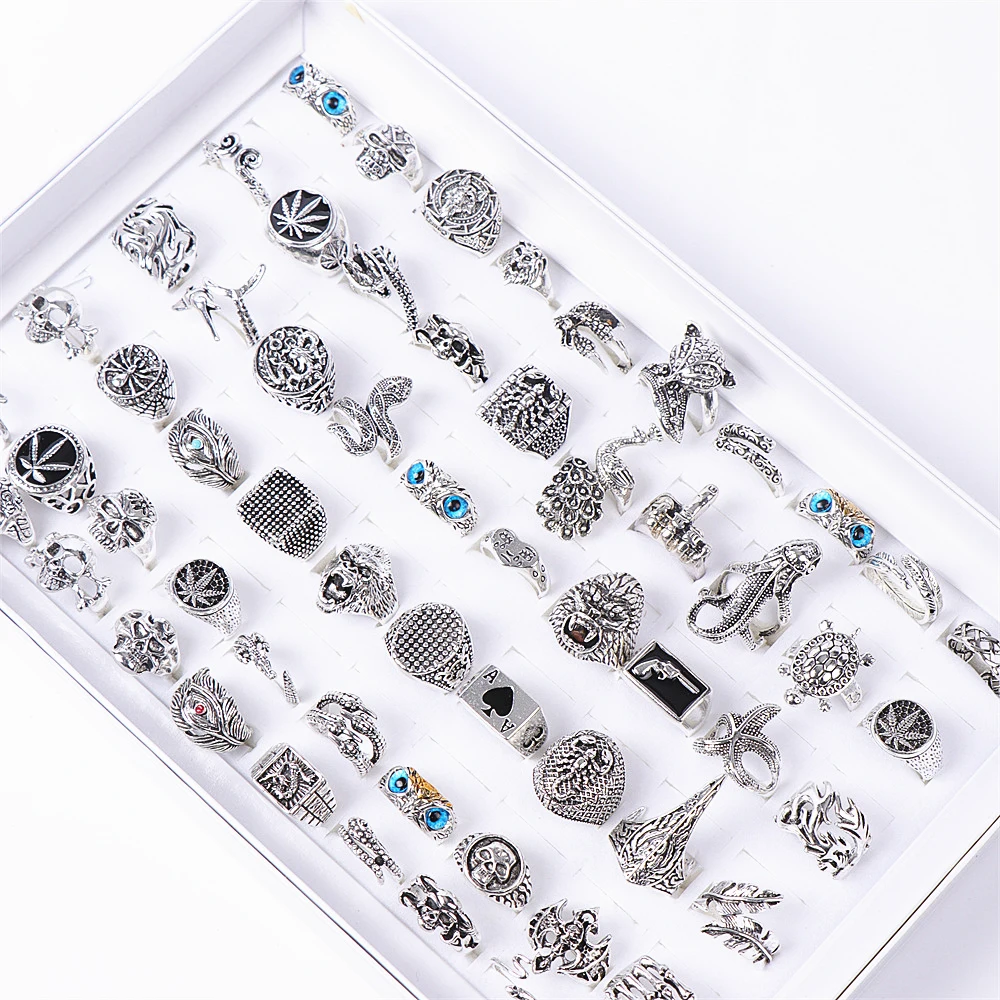 50 шт.лот, панк, готика, змея, Сова, Череп, животные, посеребренные кольца для женщин и мужчин, смешанные стильные винтажные украшения, подарки Вечерние