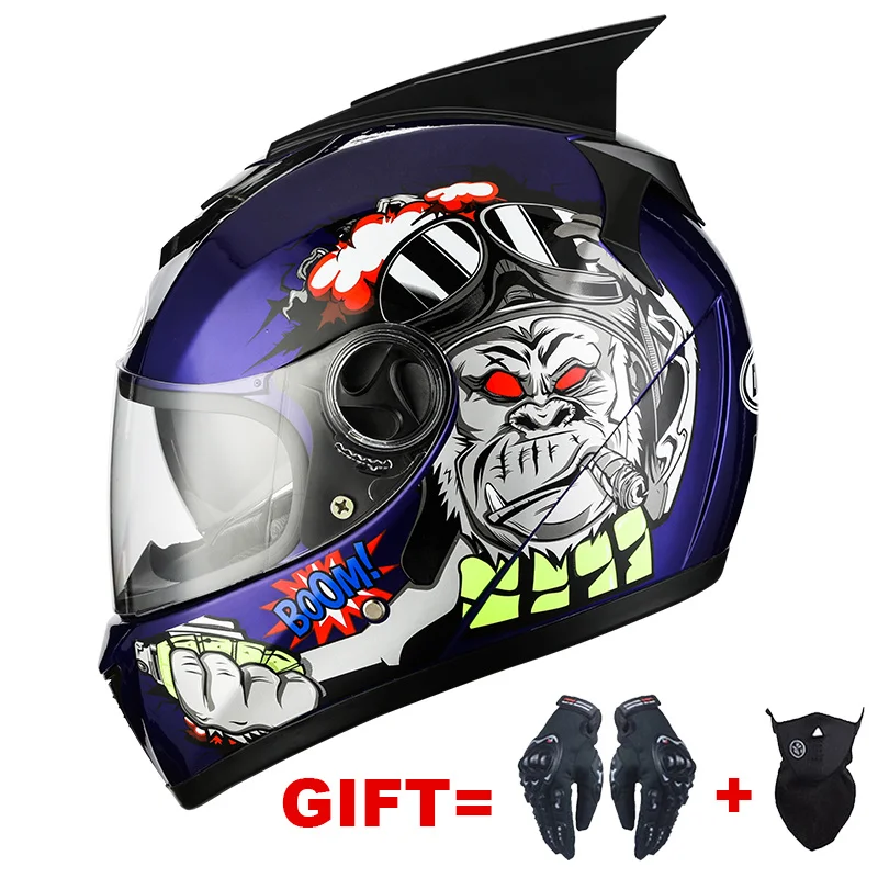 Мотоциклетный шлем с двойным стеклом, отправить перчатки и маску