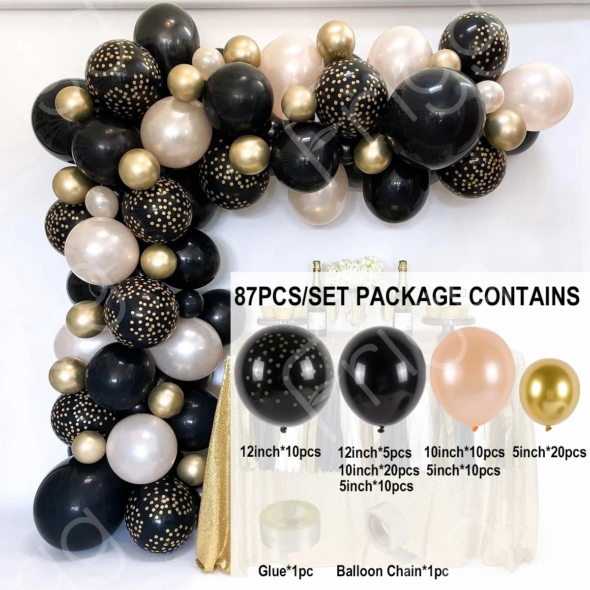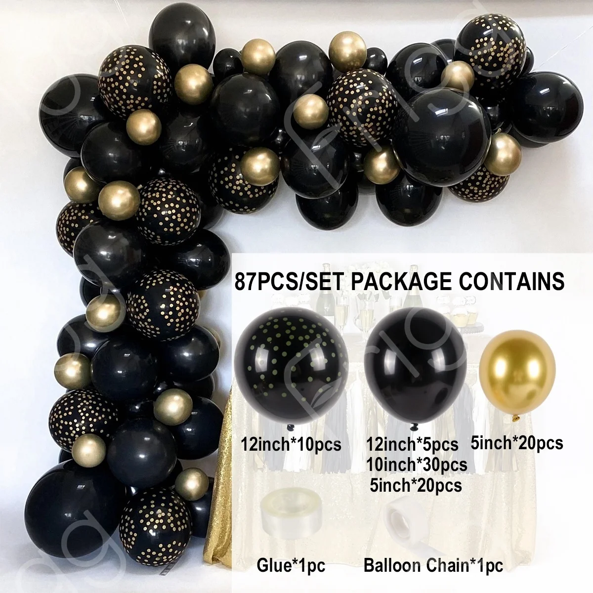 Черные воздушные шары, гирлянда, зернистость, хром, золото, латекс,...