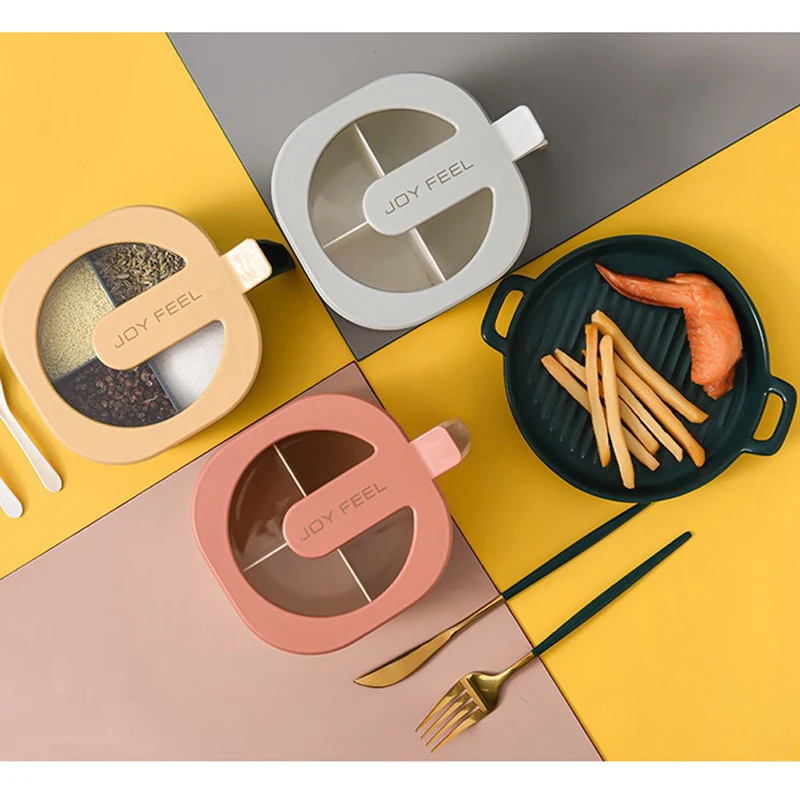 Набор коробок для приправ скандинавского контрастного цвета, кухонная банка для приправ с ложкой для хранения