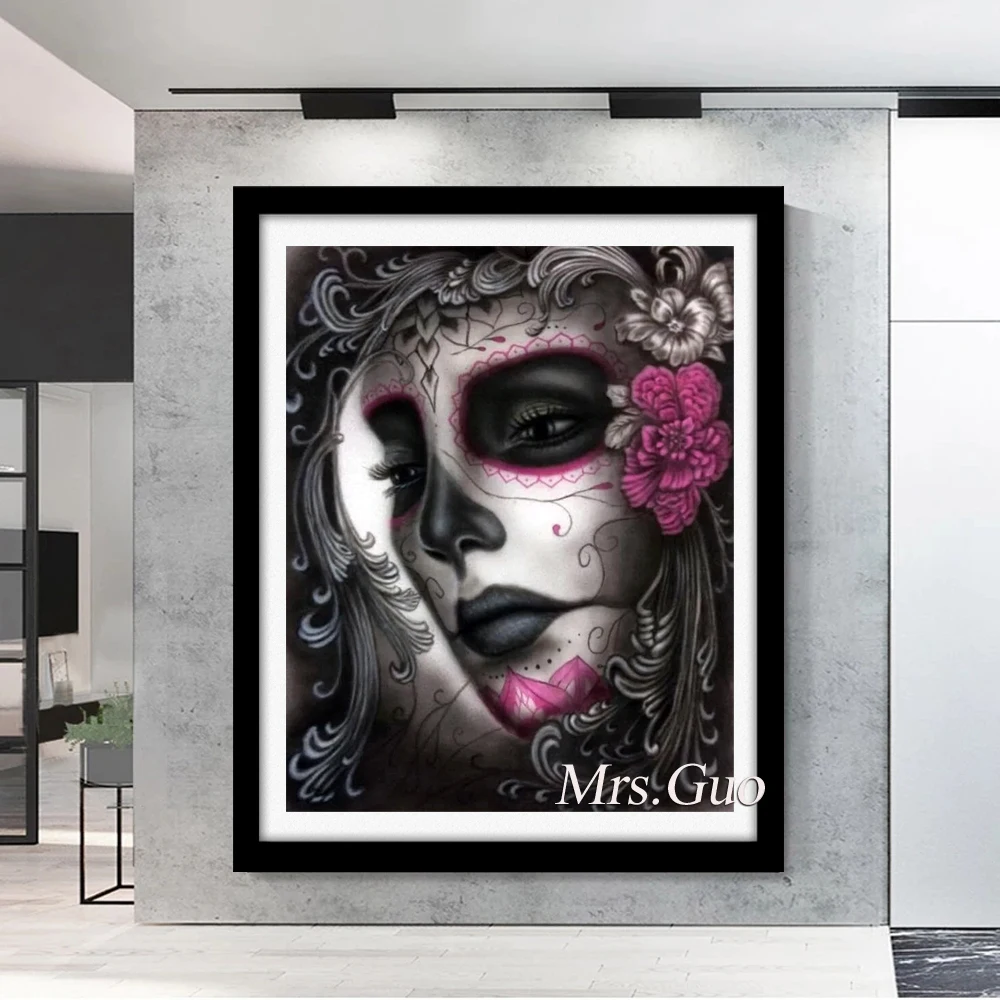 Полностью круглая квадратная дрель 5D Diy алмазная живопись Череп Мексиканская женщина Искусство вышивка крестиком мозаичное Ремесло Искусство хобби подарок