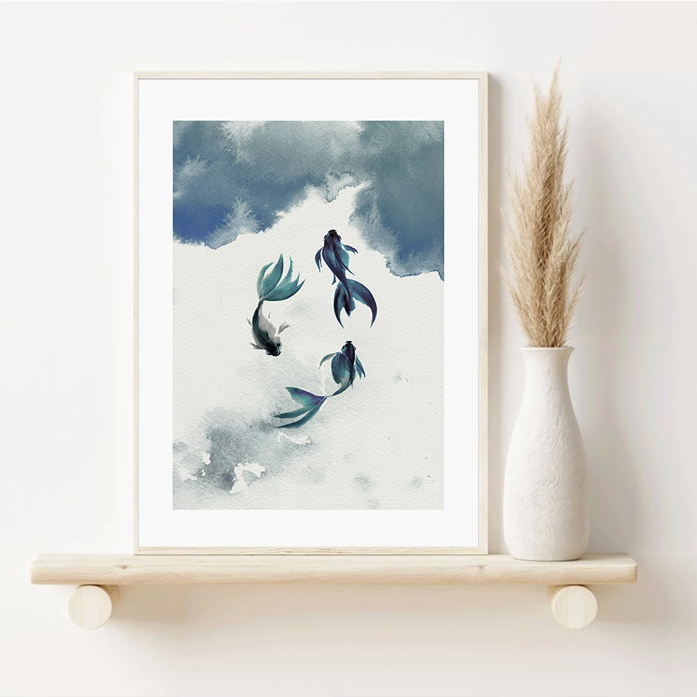 Настенные картины, Успокаивающая акварельная картина на холсте, морская жизнь, морская тематика, темно-синий акварель, постер, морское украшение для дома