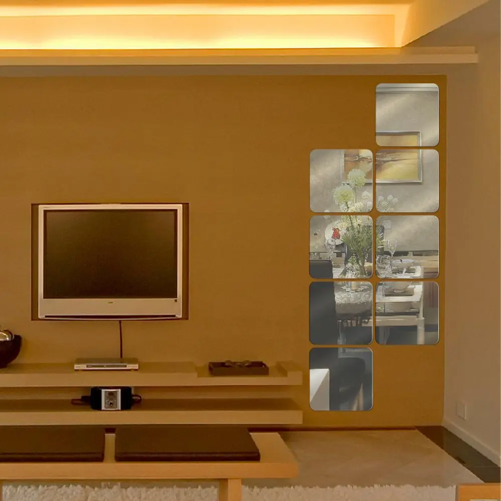 Зеркальная Наклейка на стену, закругленная квадратная акриловая нак...