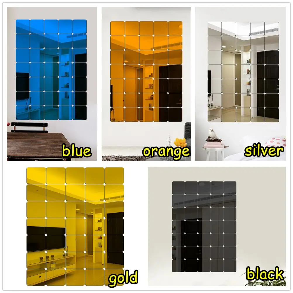 Зеркальная Наклейка на стену 35 шт.компл., 3D закругленная квадратн...