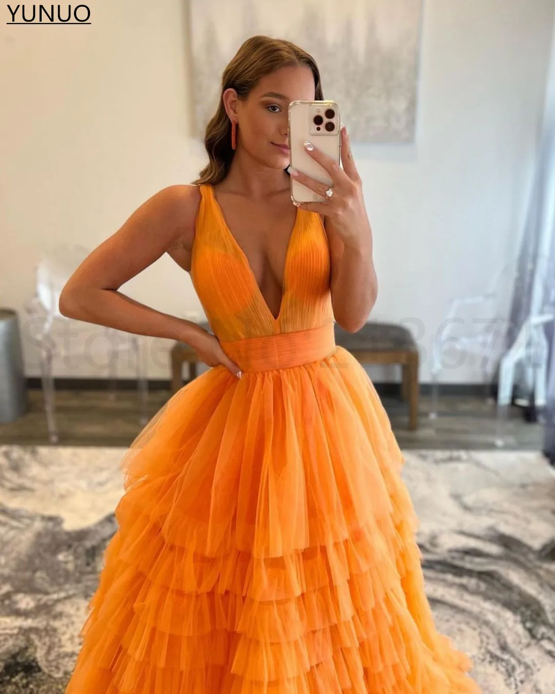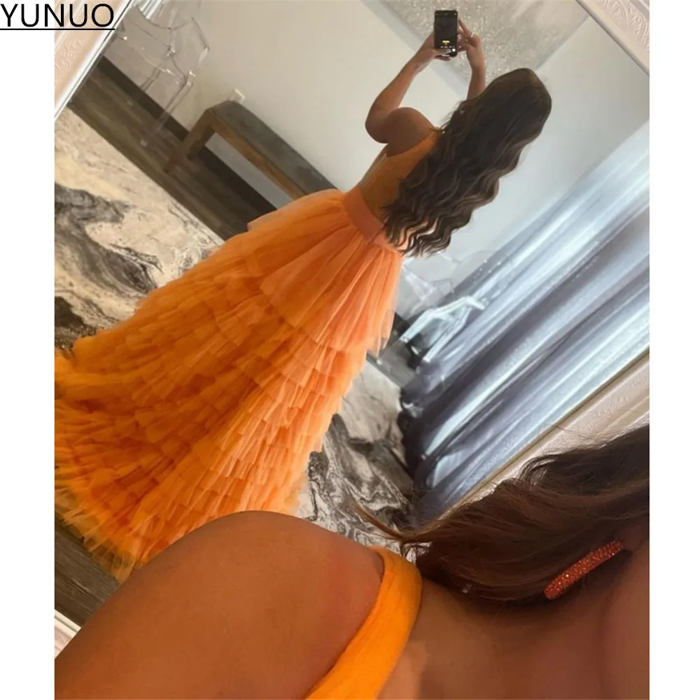 YUNUO оранжевое Многоярусное Тюлевое ТРАПЕЦИЕВИДНОЕ выпускное плать...