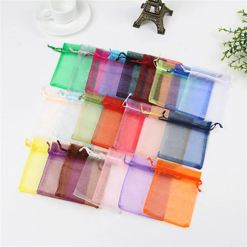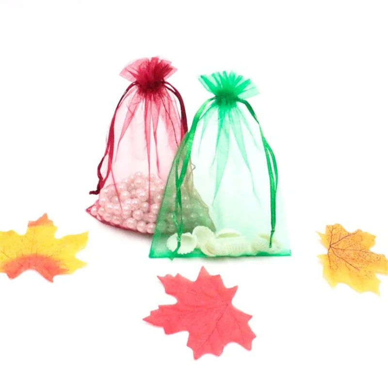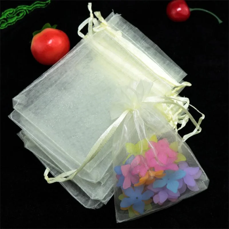 50 шт.лот 5x7 см 7x9 см 9x12 см 10x15 см, сумки из органзы на шнурке, сумки для упаковки ювелирных изделий, сумки для конфет и свадеб, оптовая продажа, подарки