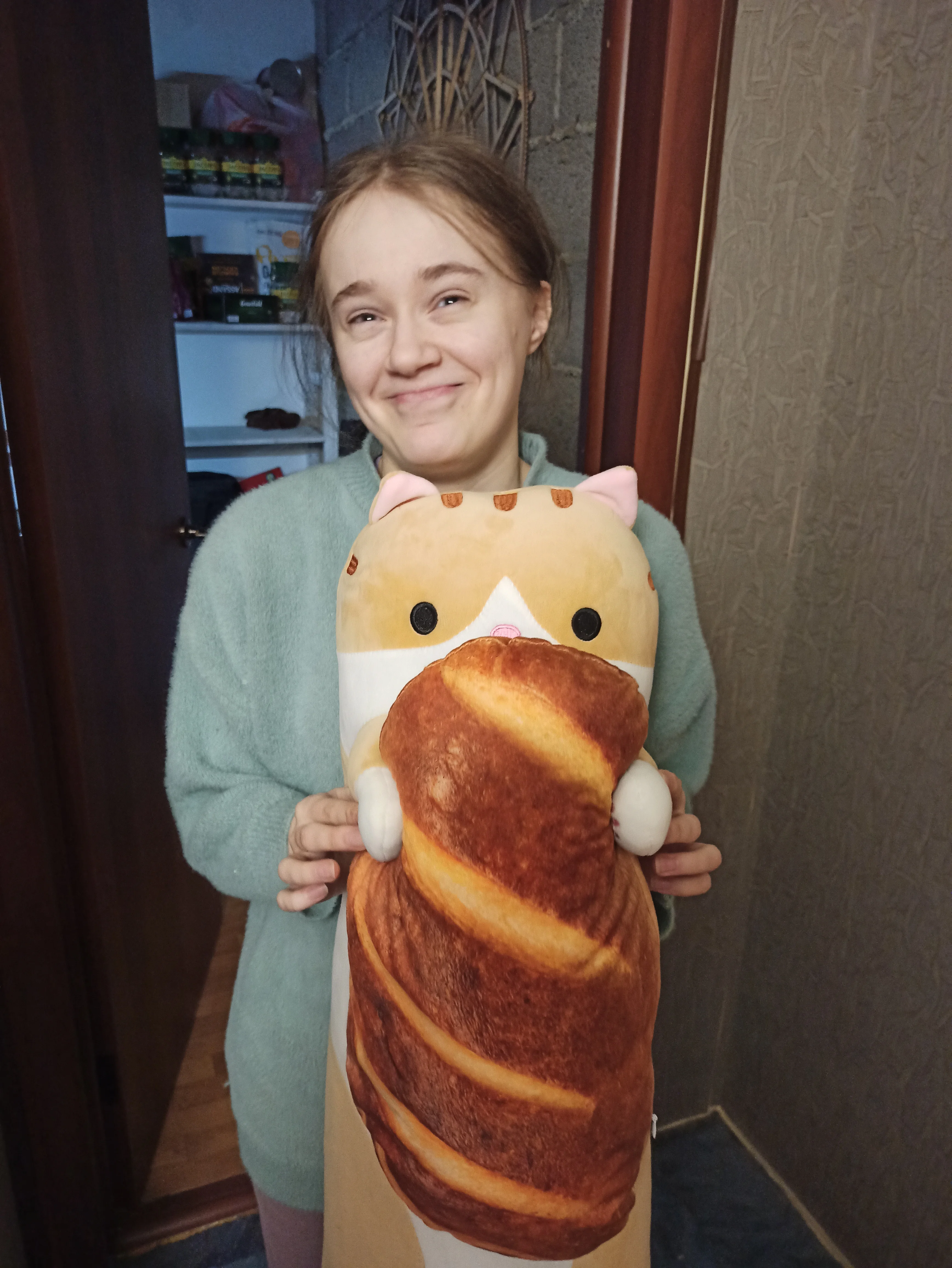 заказала 40 см, пришло 35 см, набит плохо, грустняво но факт того что это плюшевый хлеб меня радует
