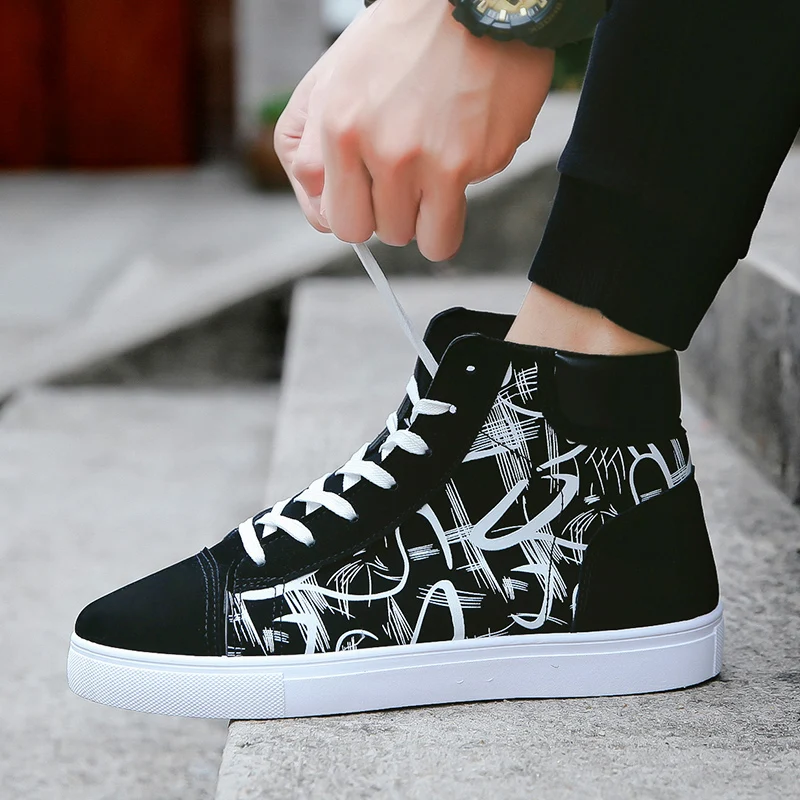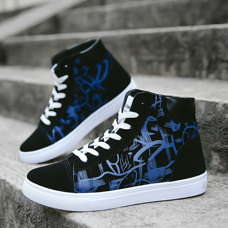 Мужские модные повседневные кроссовки черного, синего, красного цвета, молодежная универсальная спортивная обувь, легкие дышащие холщовые кроссовки с высоким верхом