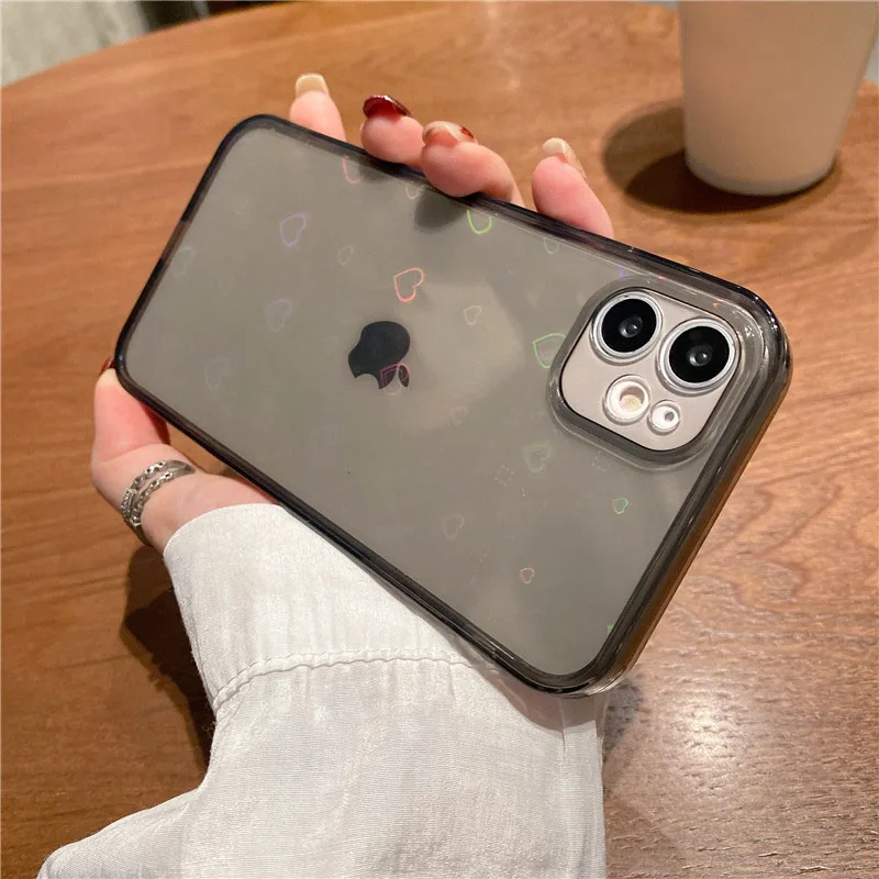 Голографический прозрачный чехол с сердцем для iPhone 11 Pro Max 12...