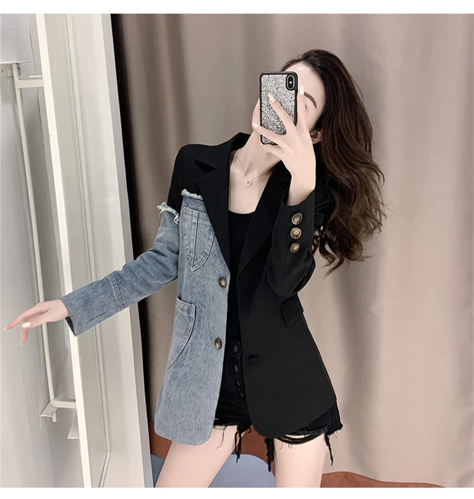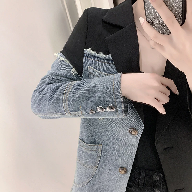 Куртка женская зимняя в ковбойском стиле контрастной расцветки, 2021