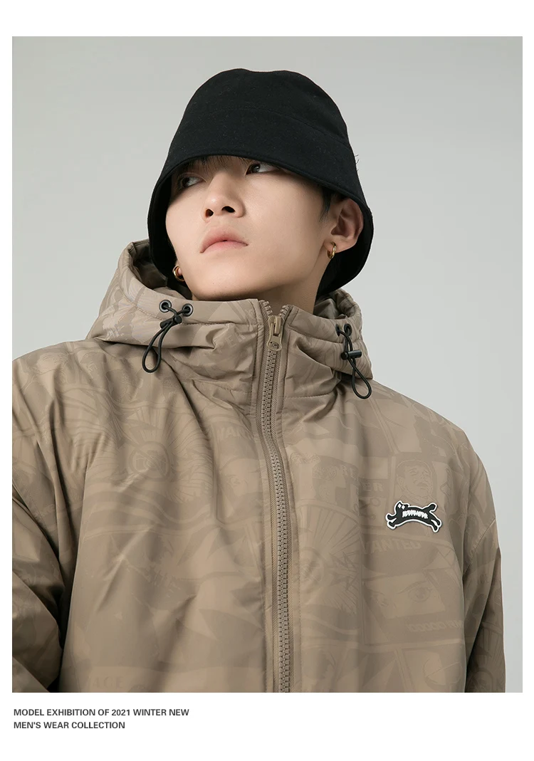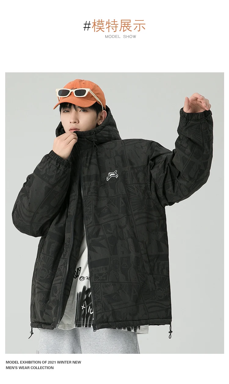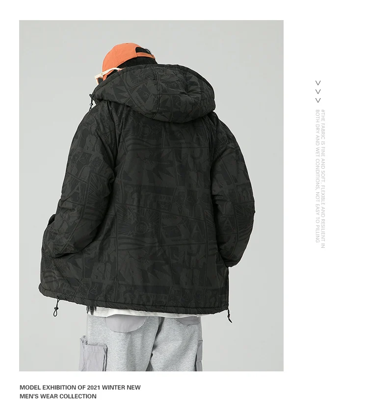 Куртка мужская зимняя, ветрозащитная, с принтом, в стиле хип-хоп
