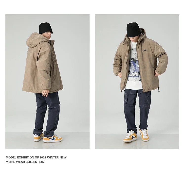 Мужской пуховик с капюшоном и защитой от ветра, в стиле хип-хоп