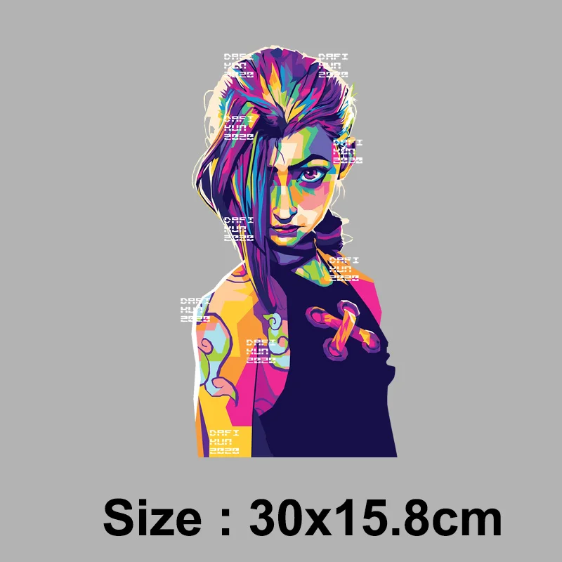 Наклейки на одежду Горячее предложение, аниме, косплей Jinx, термоклейкие виниловые наклейки для худи, футболок, моющиеся значки
