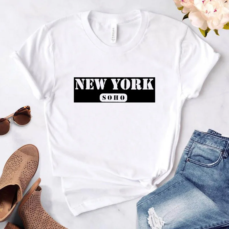 Футболка женская с надписью New York Soho, Повседневная модная рубашка с коротким рукавом, в стиле Харадзюку, на лето