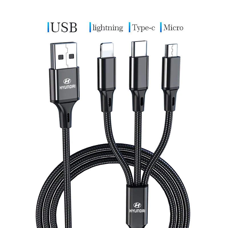 Автомобильный Стайлинг 1,17 м кабель для передачи данных 3 в 1 телефонный кабель для быстрой зарядки для Hyundai I30 I20 IX35 I40 Tucson Getz Sonata Veloster Elantra Solaris, Creta Accent