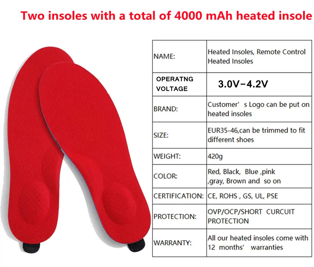 Стельки с подогревом для обуви с дистанционным управлением, 2000 мАч