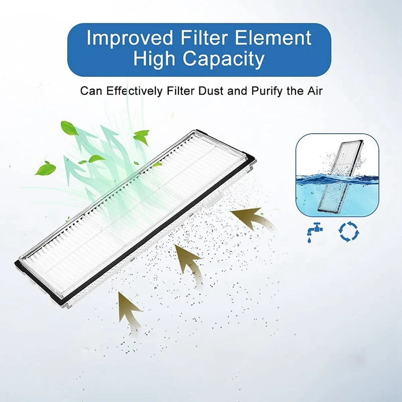 Изготовлен из высококачественных материалов, прочный.Кисть может проникать в глубокое очищение, позволяя Вашему домашнему роботу работать по лучшей производительности.Фильтр поддерживает чистую работу, уменьшая проникновение пыли, пыльцы и других аллергенов в воздух, которым вы дышите.Швабра имеет сильную Мощность блокировки воды, сильное поглощение воды, меньше пятен воды, высокое общее трение текстуры, очистка, равномерное поглощение воды и длительное удержание влаги.В рамках ежедневного обслуживания легко разбирать и заменять. Для достижения наилучших результатов запасные части должны быть заменены каждые 2-3 месяца.Цвет: цвет на фотоМатериал: пластикПосылка:2 x фильтрация6 x Фильтр6 x Фильтр4 х тряпка2 x сумка для сбораЗакрывающая панель-1 шт.1 x Omni-wheel2 x чистая печатьТолько вышеуказанная посылка, другие товары не включены.Примечание: светильник и различные дисплеи могут привести к тому, что цвет товара на картинке немного отличается от реального. Допускается погрешность в измерениях +/- 1-3 см.