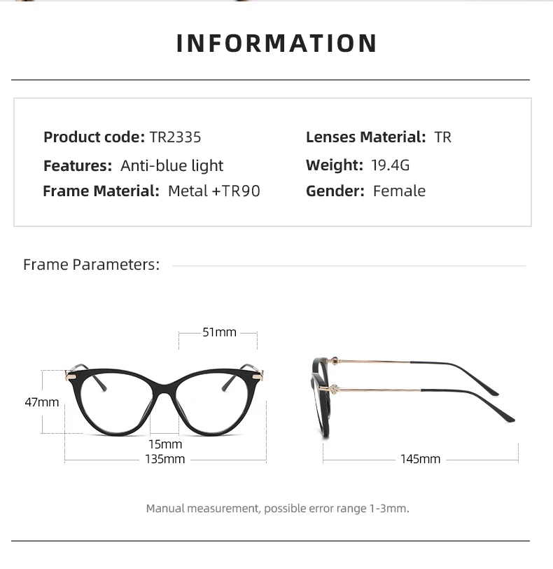 Женские очки с блокировкой сисветильник TR90, металлические оправы ...