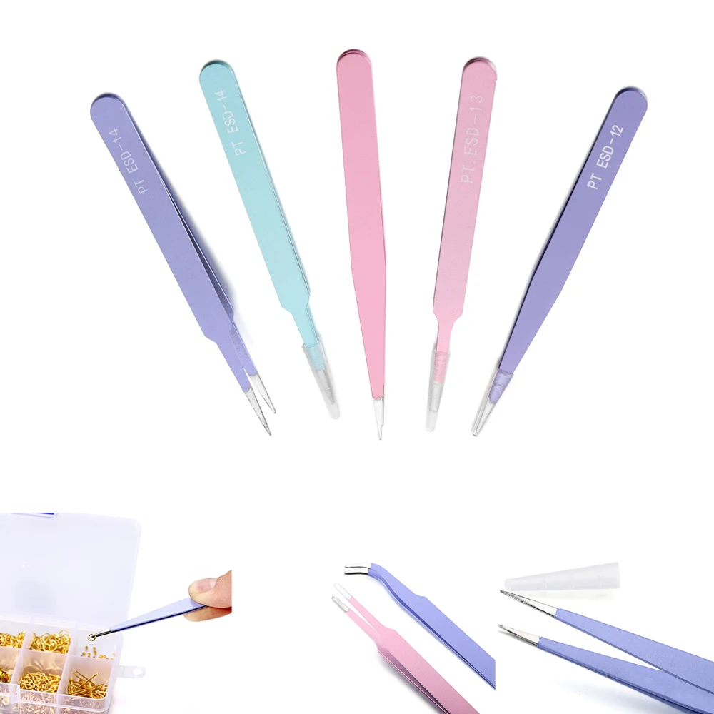 1 шт., 3 цвета, антистатические, отличное качество, пинцет, изгиб, длинный нос, крестик, пинцет для переплетения, украшения, швейные принадлежности, инструменты