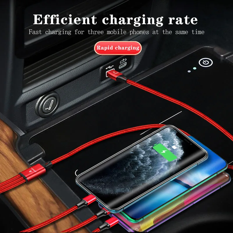 У нас есть более 40 логотипов автомобилей, пожалуйста, свяжитесь с нами, если вам нужноОписание:Название: Автомобильный кабель для зарядки телефона 3 в 1Цвет: черный/красный/синий/золотойМатериал: нейлонДлина: 1,17 мТип интерфейса: Micro/Lightning/Type-cПосылка включает в себя: 1 шт./компл.Характеристика:1. Нейлоновый материал, приятный на ощупь, прочный, не легко сломать2. Одновременная зарядка нескольких устройств не влияет на скорость зарядки3. Его можно разместить в центральной консоли автомобиля, чтобы обеспечить достаточную мощность телефона для путешествий в любое время4. 100% Бренд новый высокое качество