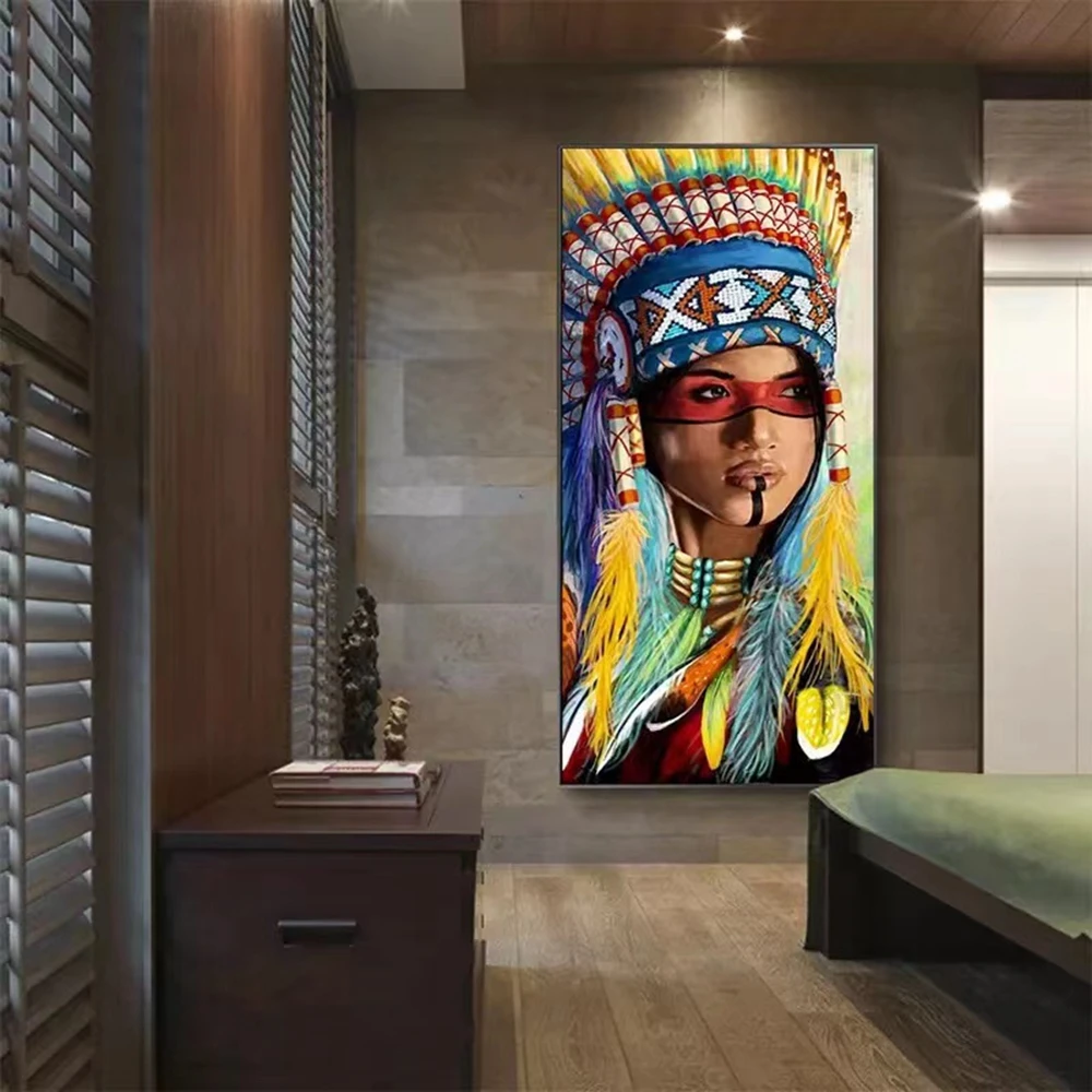 5D абстрактная алмазная живопись сделай сам, постеры с шляпой индейцев и перьев, полная круглая картина для украшения стен гостиной, домашний декор, подарок