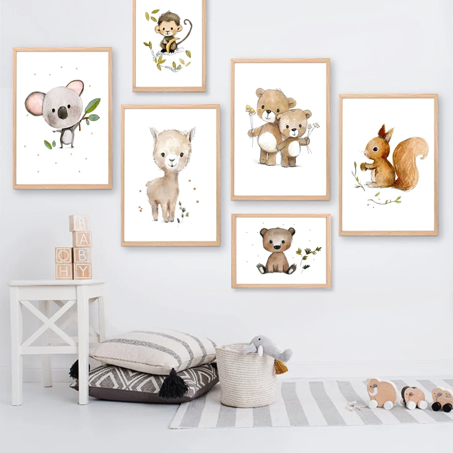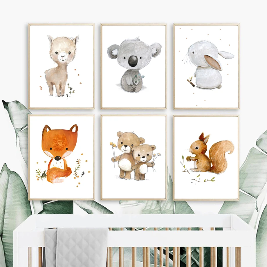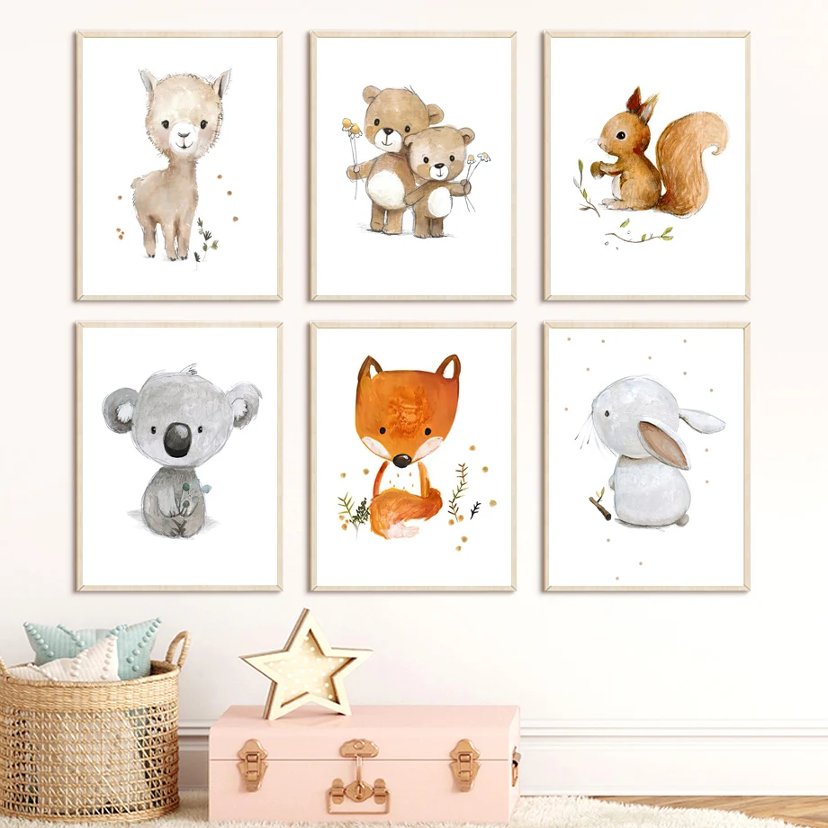 Fox Deer кролик, белка Hedgehog детская настенная Картина на холсте...
