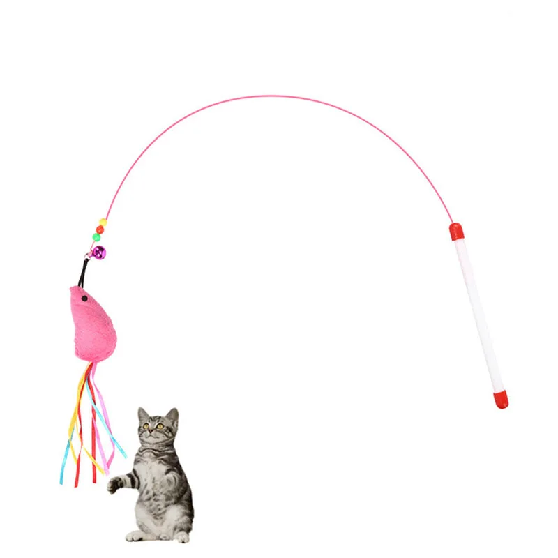Имитация мыши перо интерактивная игрушка для кошек с колокольчиком Кот палка товары для кошек мяч птица котенок игра смешные