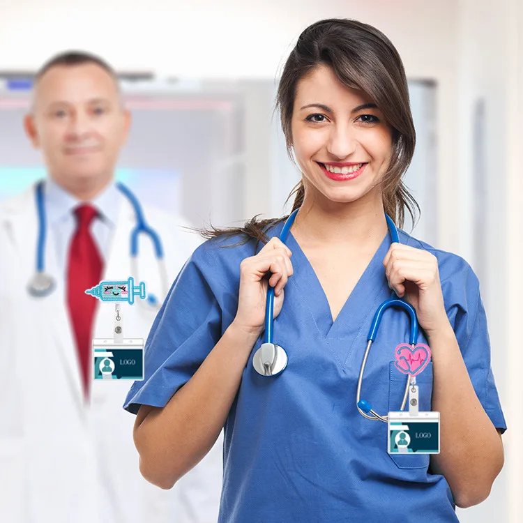Выдвижной Значок медсестры держатель для бейджей держатель для студентов врачей ID карт брелок для ключей игла Сердце шаблон именная бирка