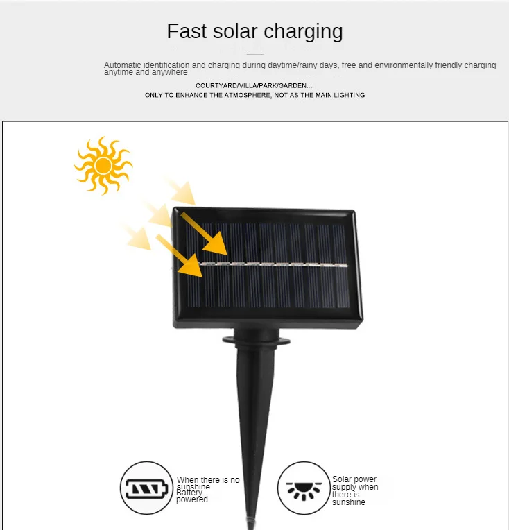 Благодаря интегрированным солнечным элементам, которые заряжают Встроенные батареи, эти огни могут быть размещены полностью без подключения к источнику питания. Эти солнечные огни заряжаются в течение дня и обеспечивают хорошее освещение в вечернее время с длительностью освещения до 6 часов.