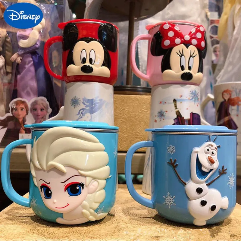 Милая чашка с героями Диснея, Микки, Минни Маус, Стич, молочная чашка Холодное сердце Эльзы, 3D чашка из нержавеющей стали, Детская кружка, рождественский подарок