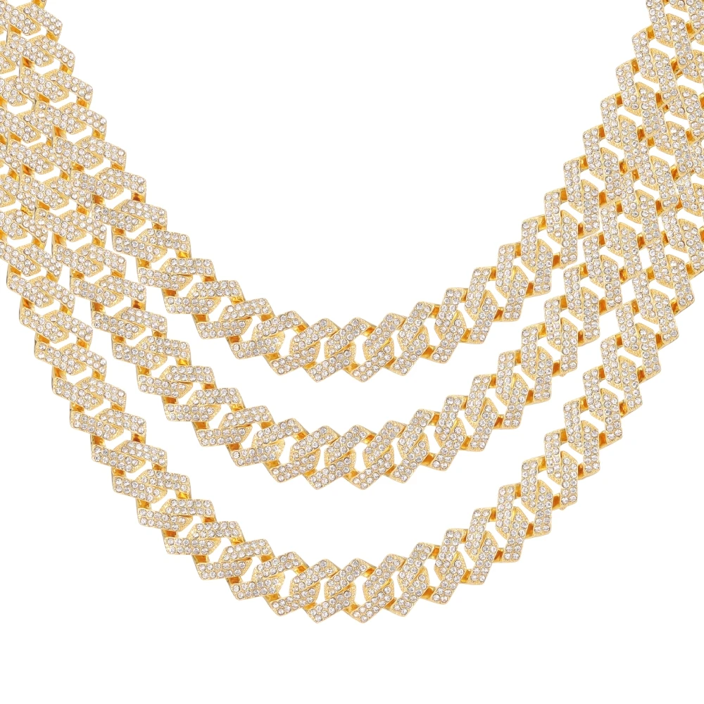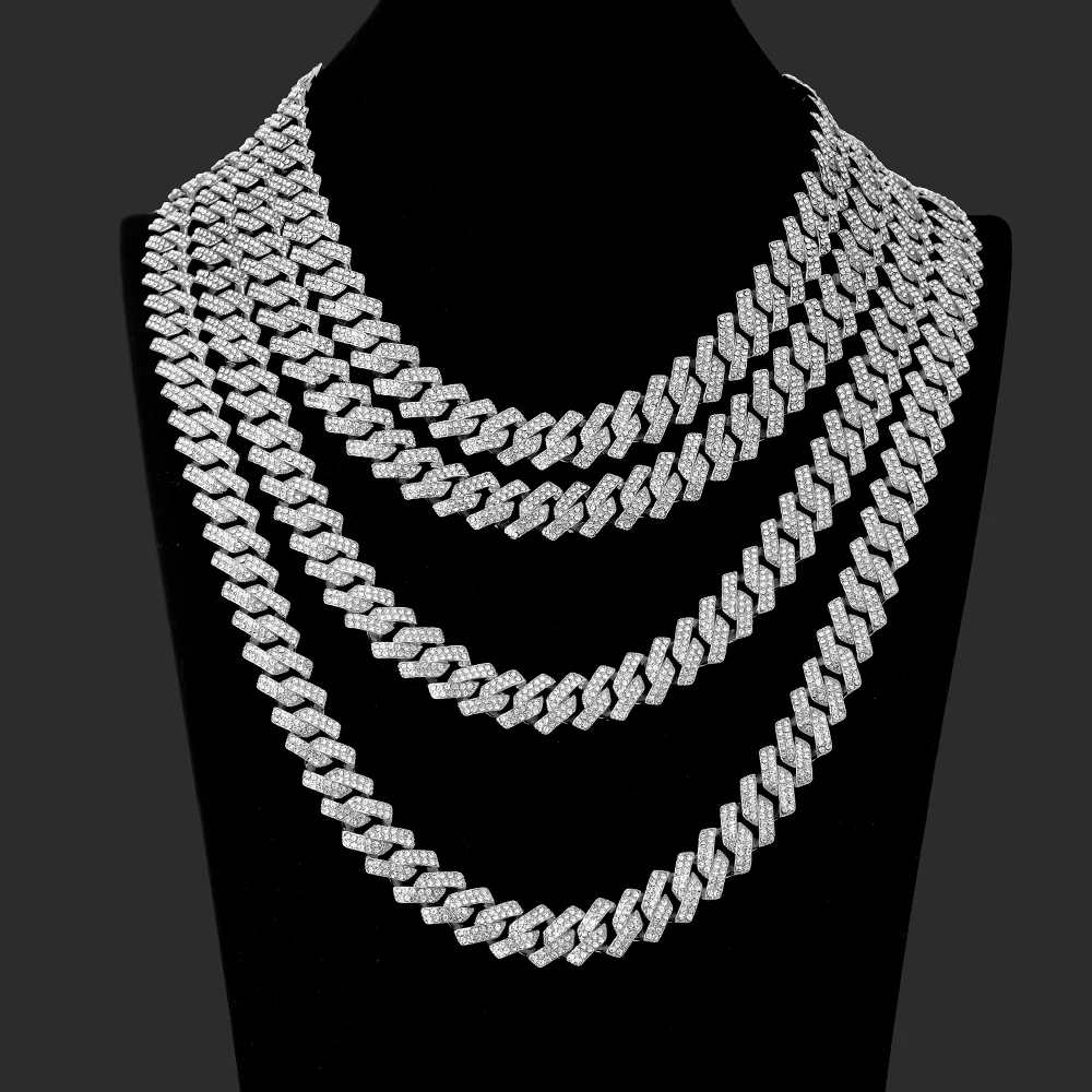 15 мм Майами сверкающие кубинские звенья цепи ожерелья для мужчин браслет полные стразы ювелирные изделия серебряный цвет цепочки в стиле хип-хоп подарок