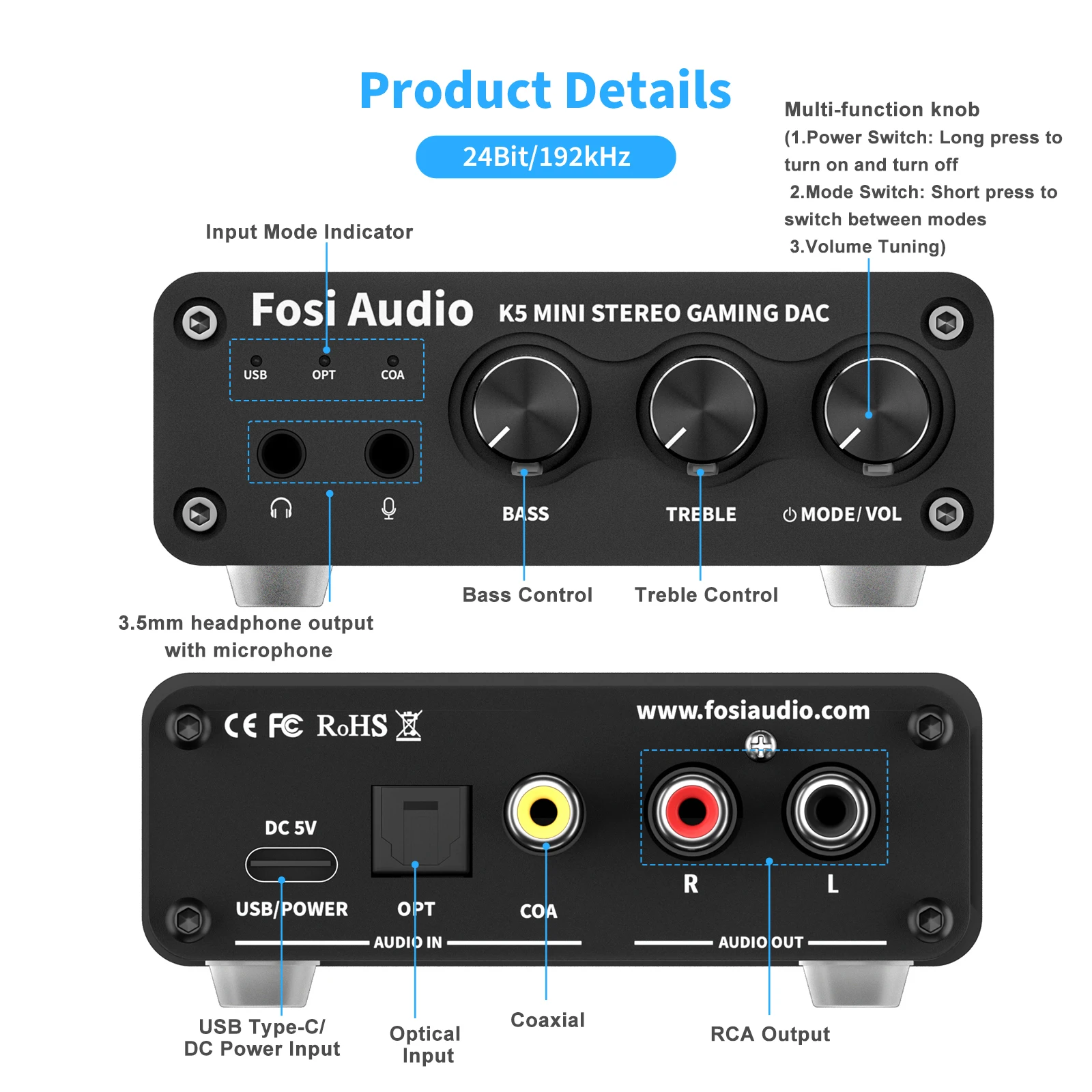 Fosi аудио USB игровой ЦАП с микрофоном усилитель для наушников аудио ЦАП адаптер для настольных активных динамиков