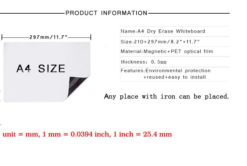 sizeA4 size,210mmx297mm/8.2"x11.7",vinyl white board sticker wall stickers