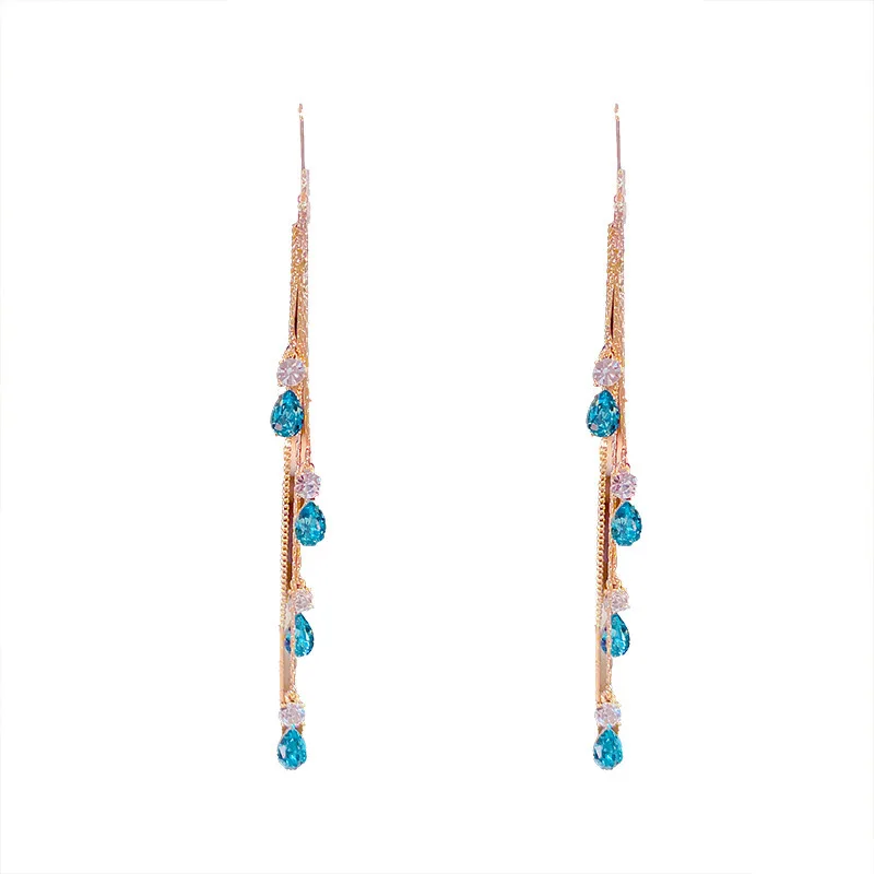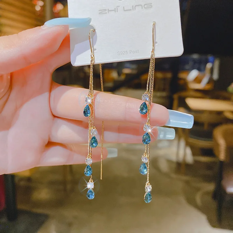 Женские винтажные серьги-кисточки, серьги в виде синих капель воды с бриллиантами, корейские модные серьги, ювелирные изделия для вечеринок, подарки