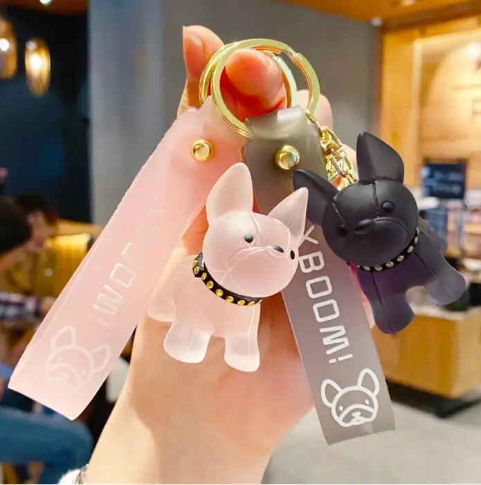 Брелок для ключей для мужчин и женщин, модный прозрачный брелок в виде французского бульдога или сумки с разноцветной собакой
