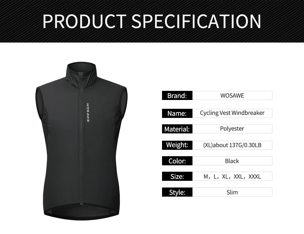 Велосипедный жилет WOSAWE для мужчин и женщин, ветрозащитный водоне...