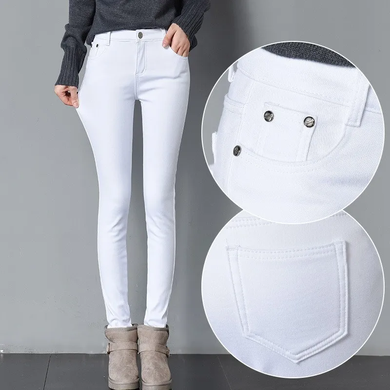 Зимние теплые джинсовые брюки FAKUNTN для женщин, однотонные обтягивающие джинсовые брюки-карандаш ярких цветов, флисовые утепленные брюки