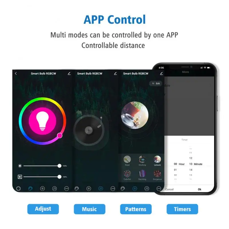 3. Пульт дистанционного управления и групповые Управление: Не допускайте попадания воды подключив этот Wi-Fi умный светильник лампочка с вашей домашней сети (поддерживает только 2,4 ГГц Wi-Fi), вы можете удаленно Управление умный Светильник лампы на вашем смартфоне имитации в тех случаях, когда вы выходите из дома. Функция группового управления позволяет управлять более чем одной умной лампой-светильник одновременно для настройки сцены.