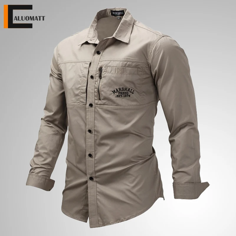 Мужская хлопковая рубашка в стиле милитари, повседневная Осенняя ру...