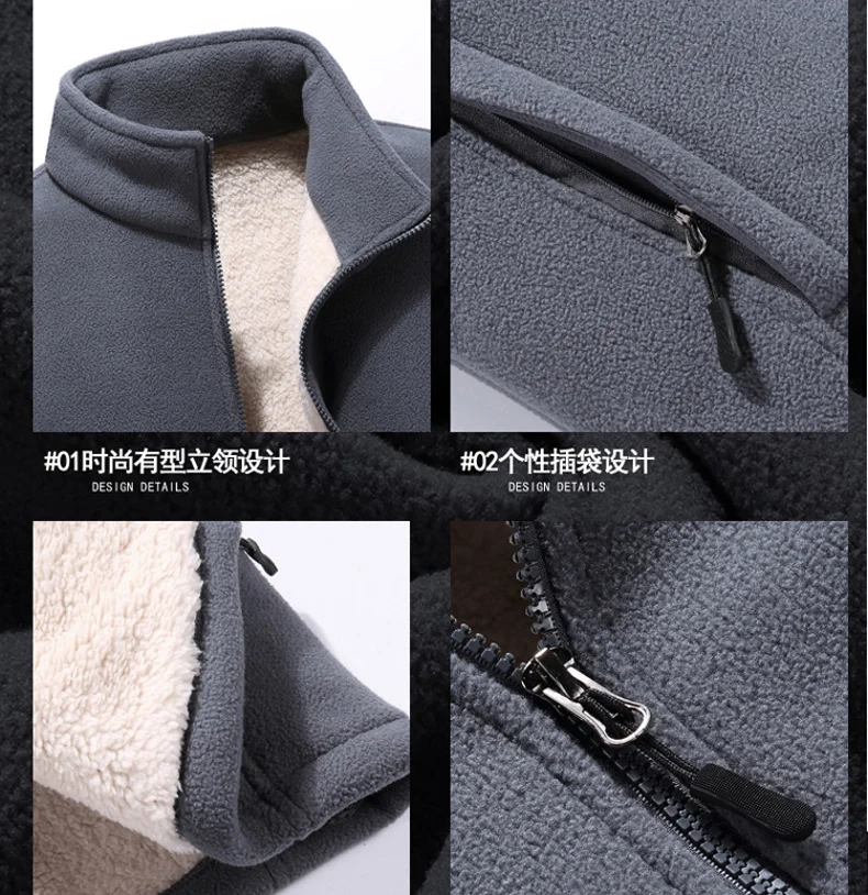 Model NumberSpring winter men's large 140kg Flannel Korean casual Plush thickened warm sports jacket with fleece fleece solid color stand collar cardigan coat